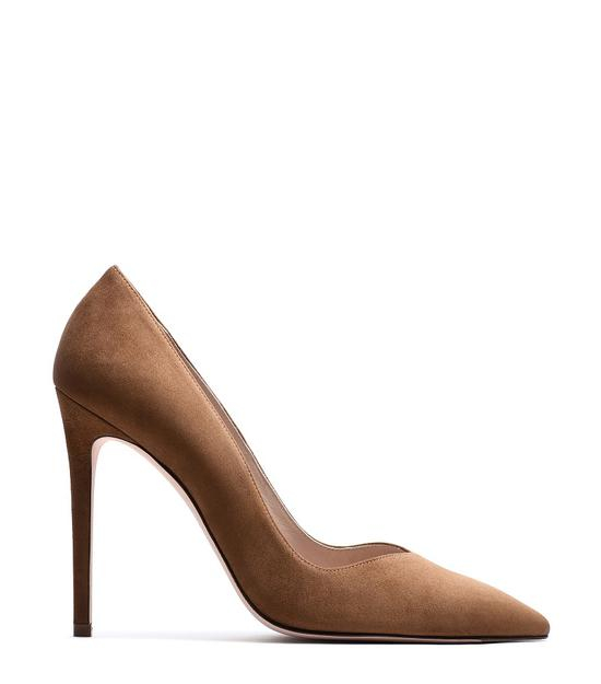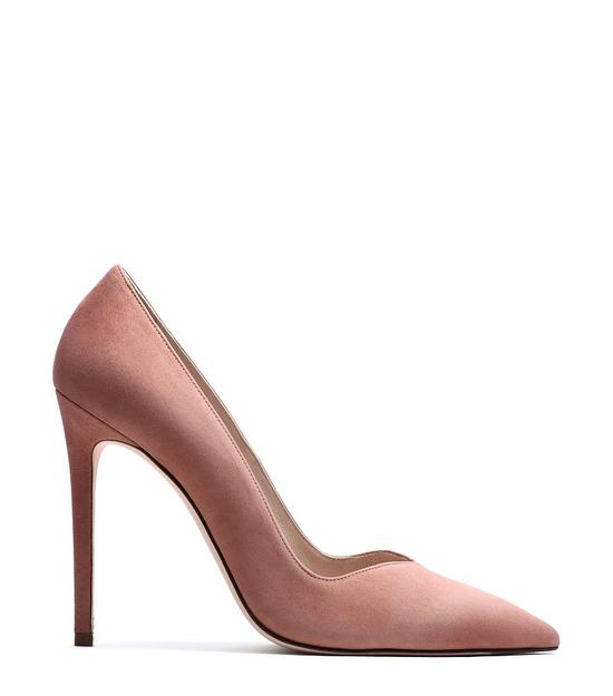 豆沙色麂皮尖头高跟鞋