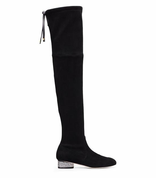 黑色麂皮水晶跟过膝靴