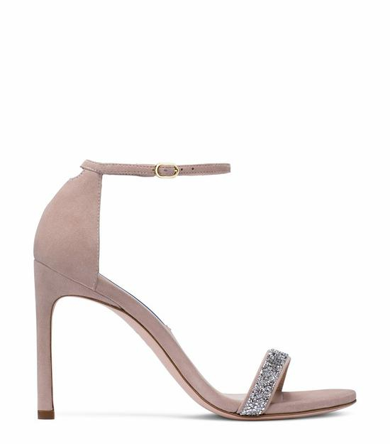 豆沙色麂皮水晶一字带高跟鞋