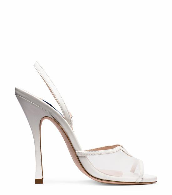 白色羊皮网纱高跟鞋