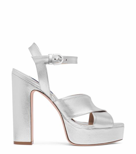 银色粗绑带高跟鞋