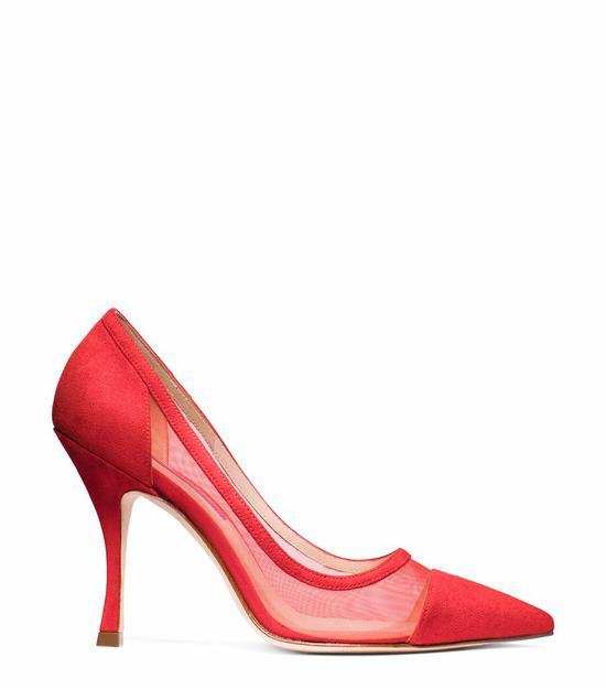 红色麂皮网纱高跟鞋