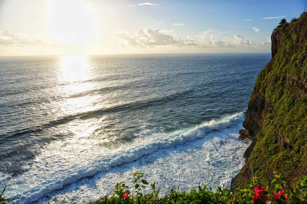 乌鲁瓦图神庙坐落在一座悬崖峭壁上,也被人们称之为“情人崖”,是巴厘岛最富盛名的旅游目的地。波涛汹涌的海水拍打着断壁,伴随着落日的余晖,不见凄美的爱情传说,只有数不尽的人群。