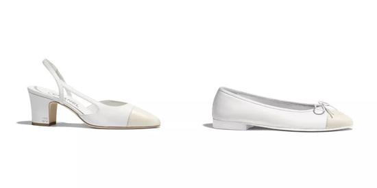 他家经典的后系带鞋和芭蕾舞鞋也出了白色,拼接象牙白,不单调,都是小羊皮质地。参考价:5700元(左),4700元(右)。▼