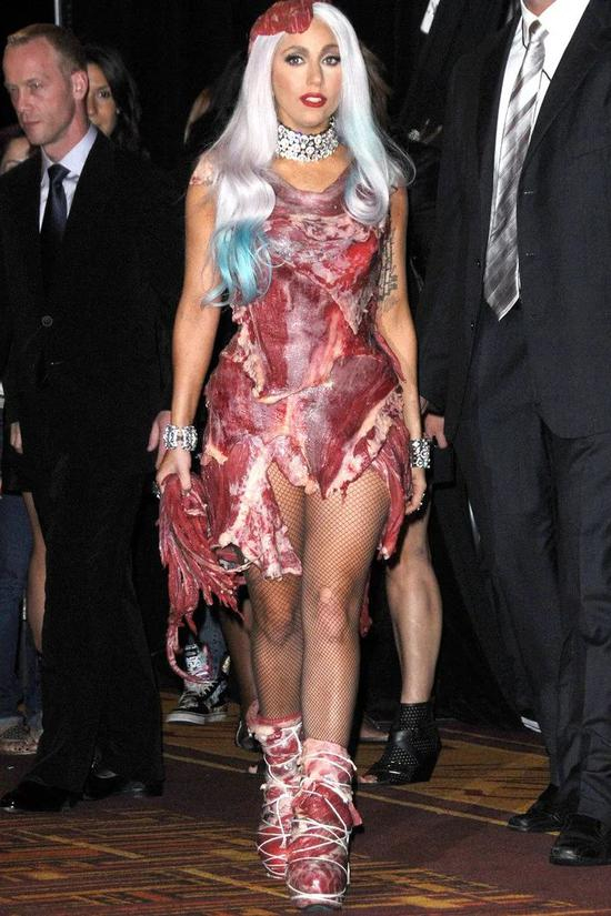 至于肉片装,想必不论多么神通广大的时装编辑,也没办法一一诠释这一片片肥五花下的灵感来源吧。雷人造型、尺度超前让她饱受诟病,争议声从未间断。然而就在众人指指点点的评论下,Gaga赢得了镁光灯的焦点。