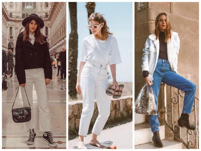 这两种牛仔裤都比较宽松,没那么紧绷,给人的感觉就是随便一穿很放松的状态,Saray Martin的look就是这种很随意的感觉。