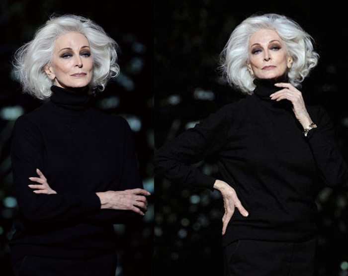 还有年过花甲的Cindy Joseph,是超龄模特,更是超级模特。坚定有力的眼神和温暖优雅的笑容,这样的美不正是皱纹和银发给她的吗?
