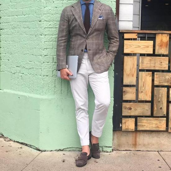 还有一个重点,就是没有必要完全贯彻外套一定要 Sack cut 的传统做法,亚洲人的胸背不够宽厚,而且普遍胯小,Sack cut 的平缓线条比较不友好,搭配时更容易影响下半身的比例,选择单西时务必要挑选合身的版型。