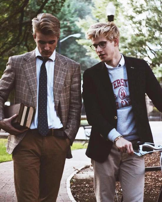 对于视觉动物来说,之所以觉得传统 Ivy 穿搭甚为土气,很大程度上是基于保守稳重的大地色系。毕竟作为最原始的配置,自然会与学院风的第一印象挂钩。
