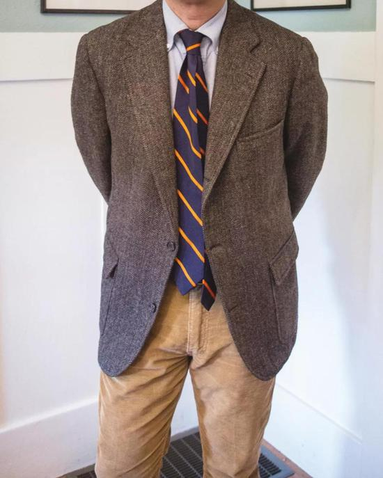 其中最为标志性的单品莫过于 Sack Coat,普遍是一种大地色系的 Sack Cut 花呢上衣,由 Brooks Brothers 所推行。