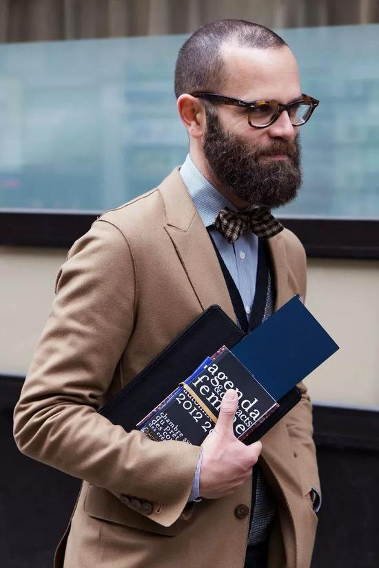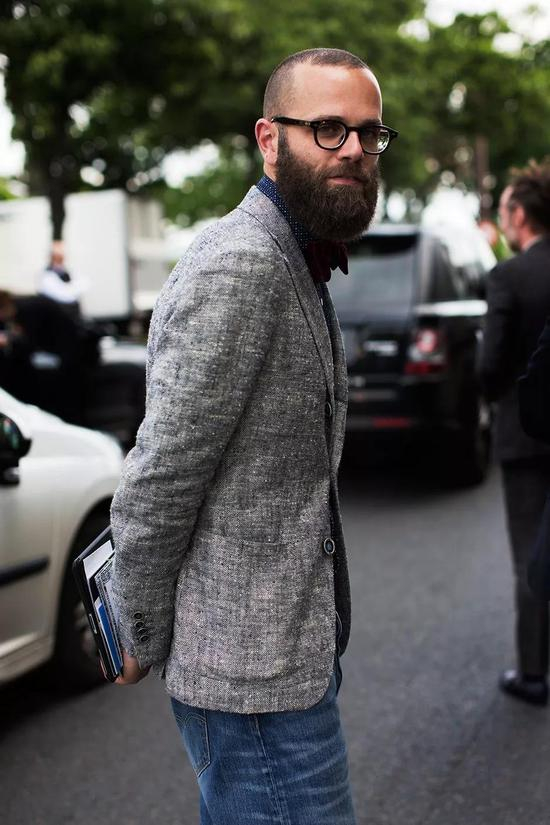 独到的眼光还体现在对配饰点缀的把握,撞色的斜纹领带和精致 Bow tie 都是他营造学院风的致胜法宝。