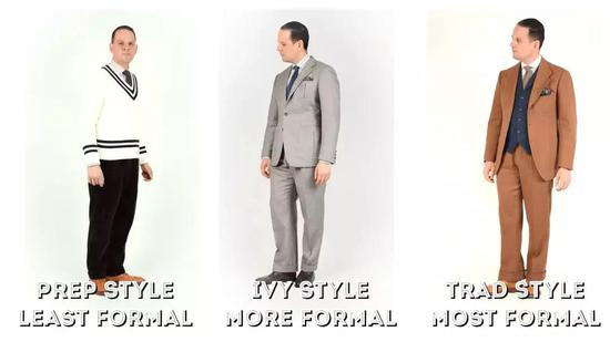 换句话说,正式程度的排序是:Trad Style > Ivy Style > Preppy Style,而这三种都是学院风的不同形态而已。