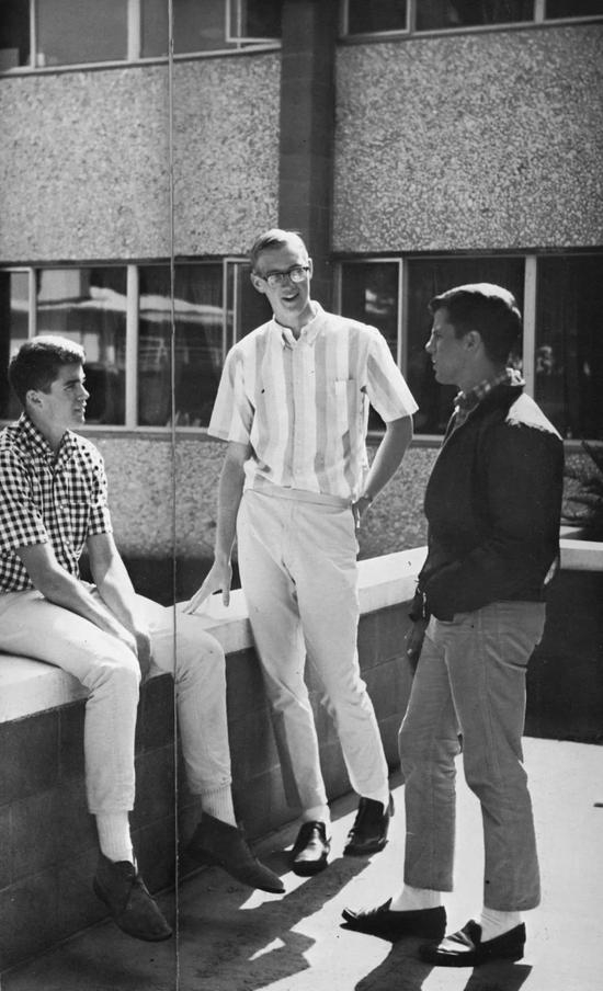 随着更加轻松的着装面世,正统的自然肩合身西裝、BD Shirt、 Polo 衫、Madras 格纹单品、毛衣等单品备受常春藤联盟学子们的青睐,在他们的演绎下,人们看到了关于西服混搭的可能性,而正装的适用场景也随之减少。