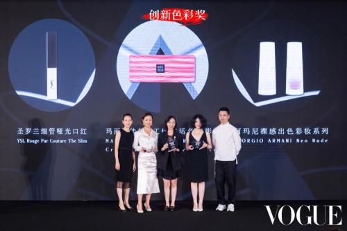 Sephora中国区商品副总裁June Rhee与专业评委明星彩妆造型师春楠共同为圣罗兰细管哑光口红、玛丽黛佳色彩工作室活色眼影盘、阿玛尼裸感出色彩妆系列颁发了“创新色彩奖”。
