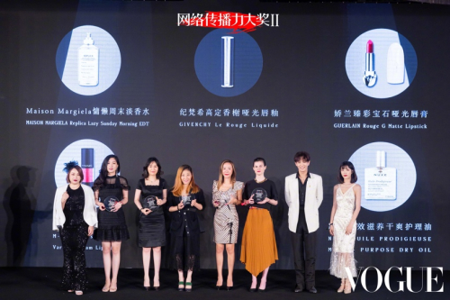 UNINE队长李汶翰、时尚达人IAMINRED口红控主编Monica与时尚达人买买菌共同为Maison Margiela慵懒周末淡香水、纪梵希高定香榭哑光唇釉、娇兰臻彩宝石哑光唇膏、M.A.C清新漆光唇釉、欧树多效滋养干爽护理油颁发了“网络传播力大奖”。
