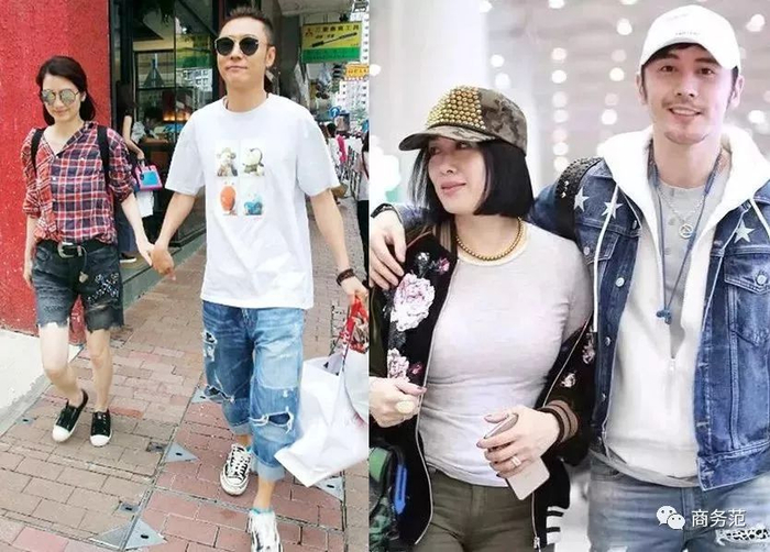 其实,很多姐弟恋CP,都不乏女方“迎合”男方穿衣的例子,比如洪欣vs张丹峰,钟丽缇vs张伦硕这两对,女方都是女神级的,但为了和小自己10岁以上的另一半看上去更搭调,难免会卸下“女神包袱”。