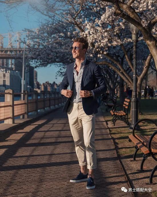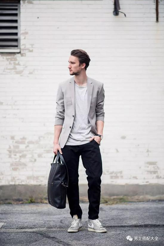 除了上述的鞋子外,小白鞋、帆布鞋都可以“无缝对接”轻便西装外套。