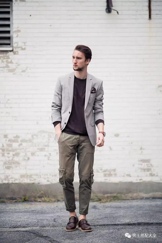 西装外套+T恤打底,再搭配一条牛仔裤或者休闲裤,是一点不正统。在鞋子上选择搭配运动鞋或者乐福、孟克,都是极其休闲的。这样的穿着出门,无论是约会还是工作,都不会突兀。
