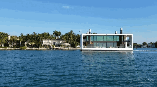 导语:取名为 Arkup ,可以漂浮在海面上,这是一艘长为 22.9m 的两层活动房,建筑面积 404㎡。