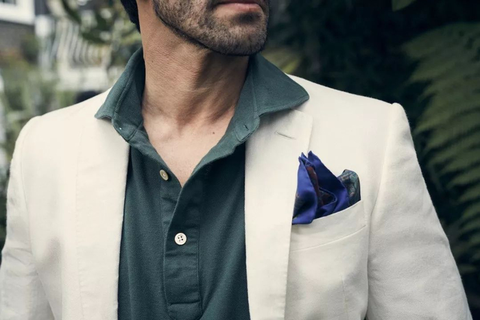 针对天生脖子细长的老爷,可将扣子全部系上。如果脖子不太明显或已有发福趋势的办公室多肉患者,解开上面两颗扣子,‘深V’有拉长脸型显瘦的效果,毛发旺盛的男人可礼貌地内搭一件圆领白T,一样很帅,室外婚礼降温时外搭任何外套都可以融合得很好。