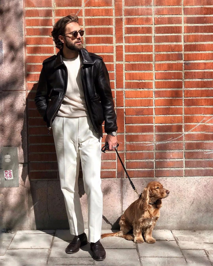 鞋履上可以考虑球鞋,毕竟不是一个工作场合,平日主张休闲舒适的老爷赶紧趁机穿上心爱的球鞋,白色最佳。