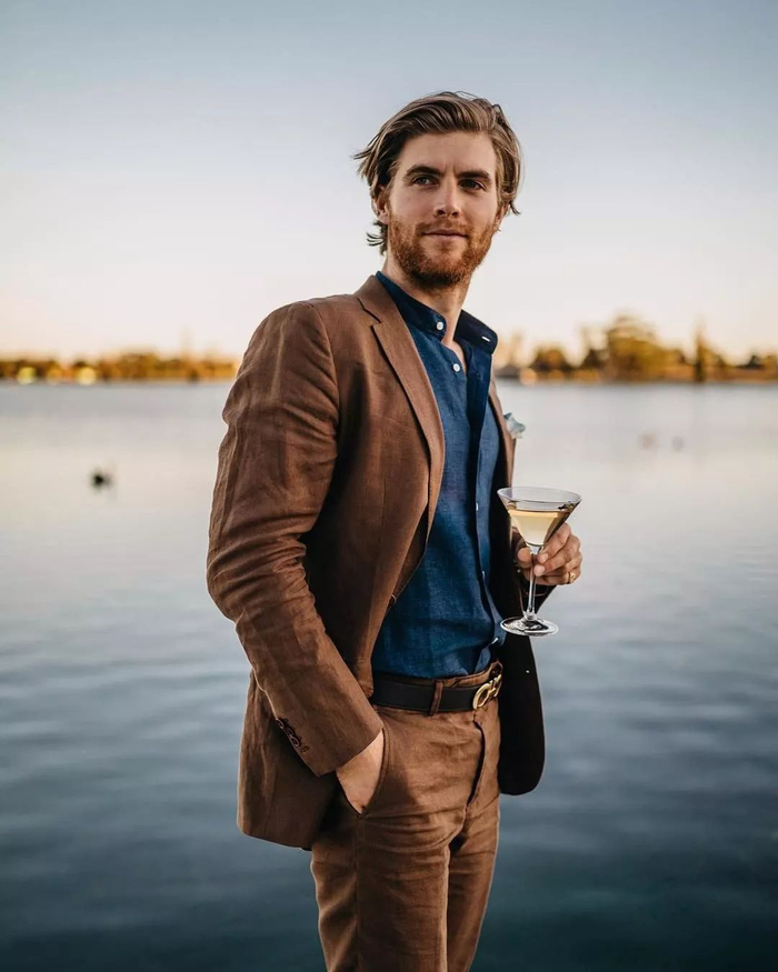 今天推荐适合婚礼的单西指面料较薄(亚麻、亚麻混纺或泡泡纱等面料均可),结构上,垫肩很薄甚至没有,也不做强收腰设计的休闲西装外套,不会被认成新郎官,保证你轻松得体地穿去婚礼现场。