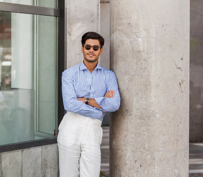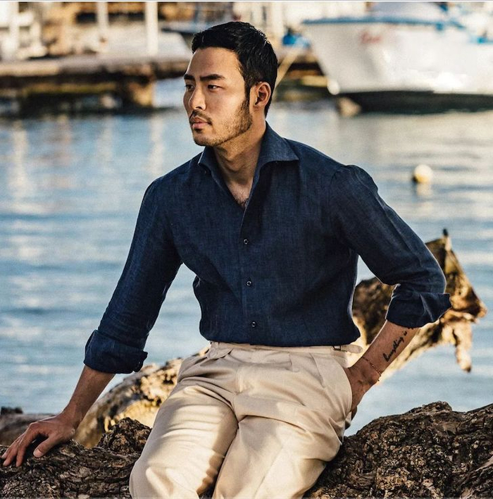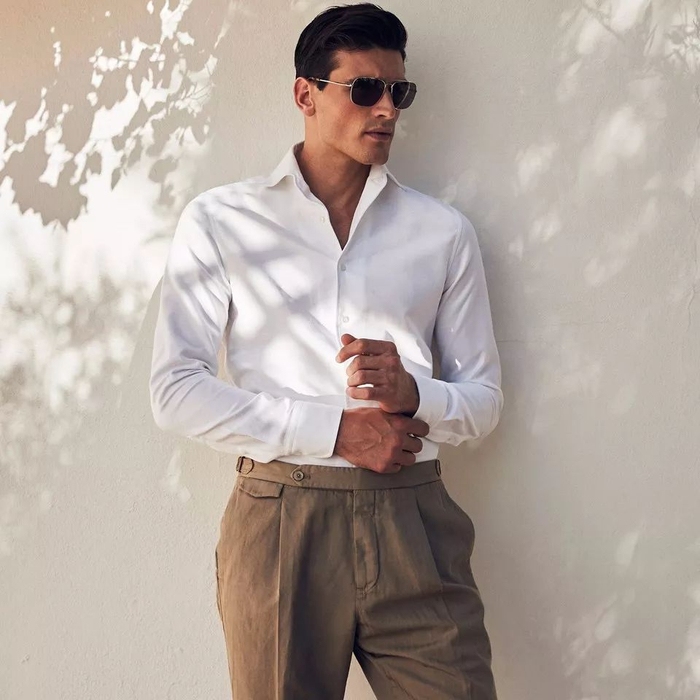 参加婚礼前,不必花太多心思打理熨烫衣领。更何况Jerry Seinfeld说过‘衬衫的成与败由第二颗扣子决定’,在婚礼场合,普通衬衫扣子全扣上未免憋得慌,解开2粒及以上又容易显随便,立领衬衫就能让你只解开一粒扣,又身心舒适。在广东等比较热的地方,相当透气。