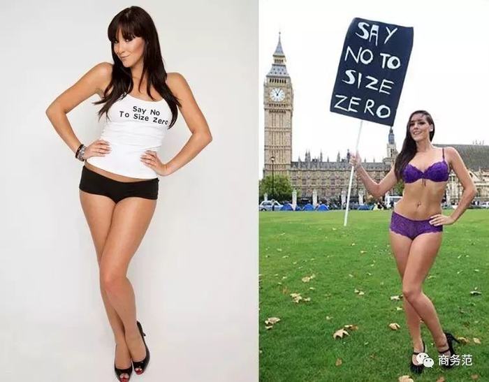 曾为内衣品牌Ultimo拍摄过广告的英国模特凯蒂·格林,在2009年就率先发起了一项“拒绝0号尺码”的运动,她通过征集2万个签名,来要求首相和议会立法,对有合约在身的模特进行健康检查,并禁止体重过轻的模特走T台。