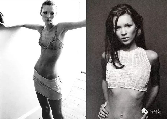 自从凯特·摩丝横空出世,Calvin Klein、YSL、Dior等各种时尚大牌开始为她着迷,“骨感美”一夜之间成了时尚圈的主流审美,“零号尺码”也从此成了超模标配。