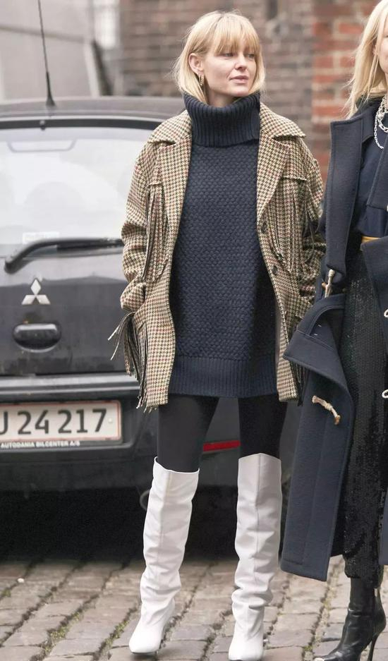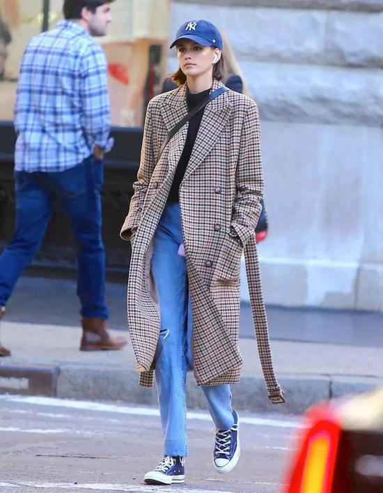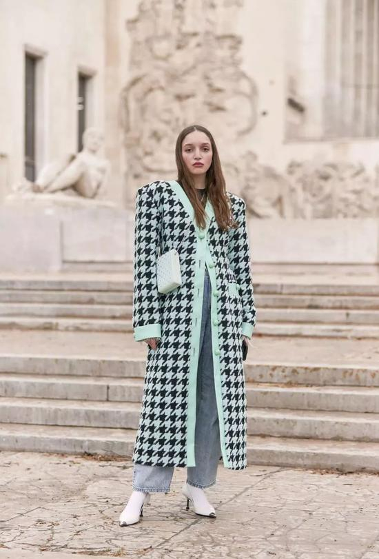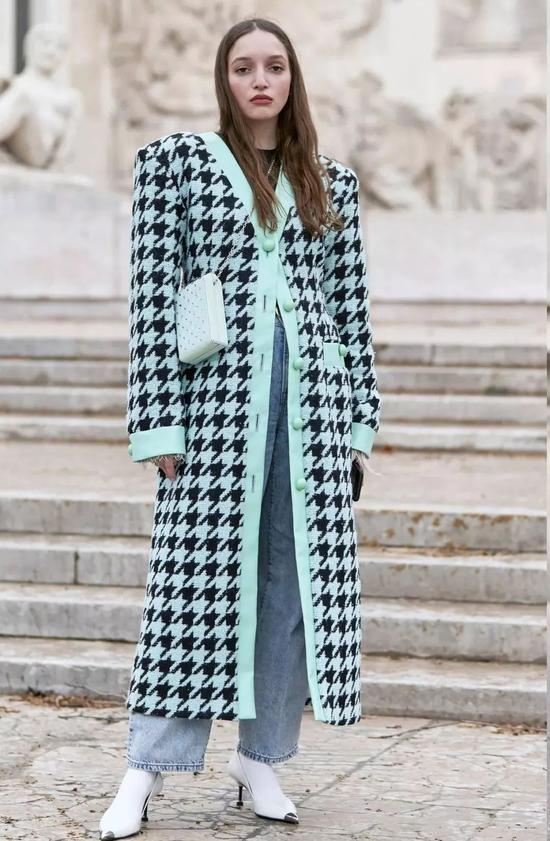 “引无数时尚icon竞撞衫”的千鸟格外套