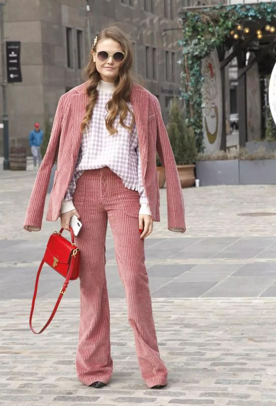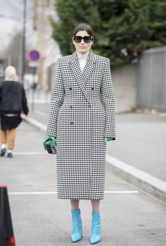 姐妹们倒不如直接选件鲜艳的千鸟格~