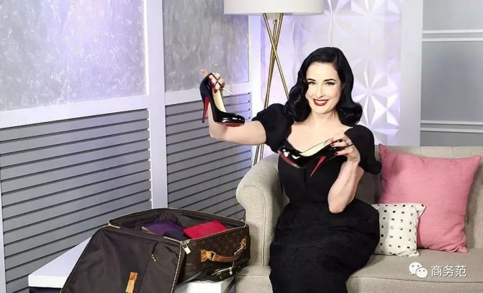 Dita Von Teese每次出门也要带一堆他家的箱子 ↓