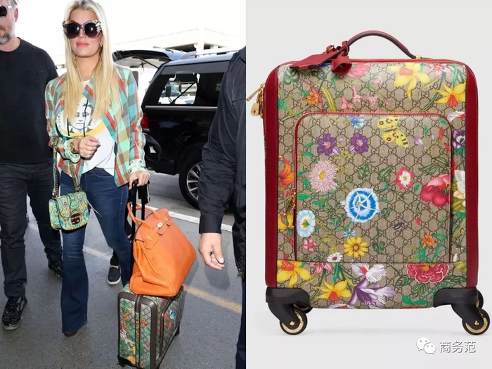 随着复古风格回潮,Gucci推出了更复古的GG Supreme材质。它不仅易于清理,防磨耐刮,而且暗花双G极具辨识度。GG Supreme帆布材质的行李箱,小号的价格都在21000元左右。