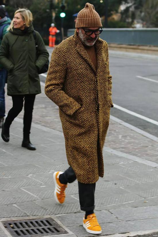 由于脏黄色的明亮程度不会太高,也就大幅度降低了驾驭难度,特别是在呢料大衣身上,风格质感会变得更为沉稳。