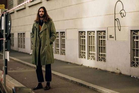 也区别开常见的卡其色风衣,军绿色风衣不仅容易驾驭,还具有难得的灵活张力,不会那么土黄,要更加轻盈自如。