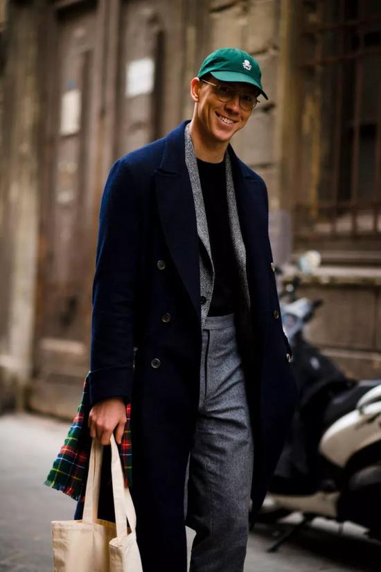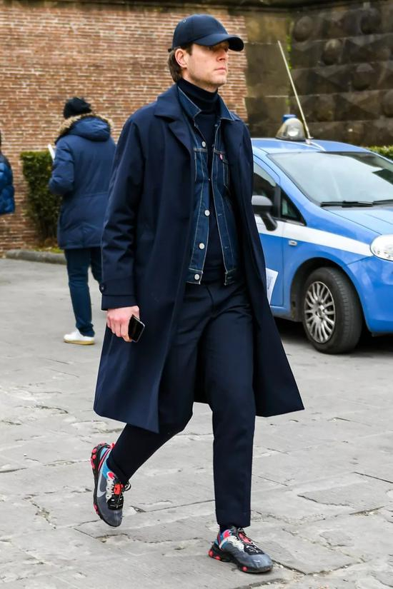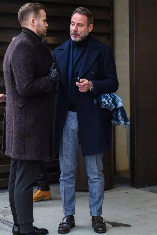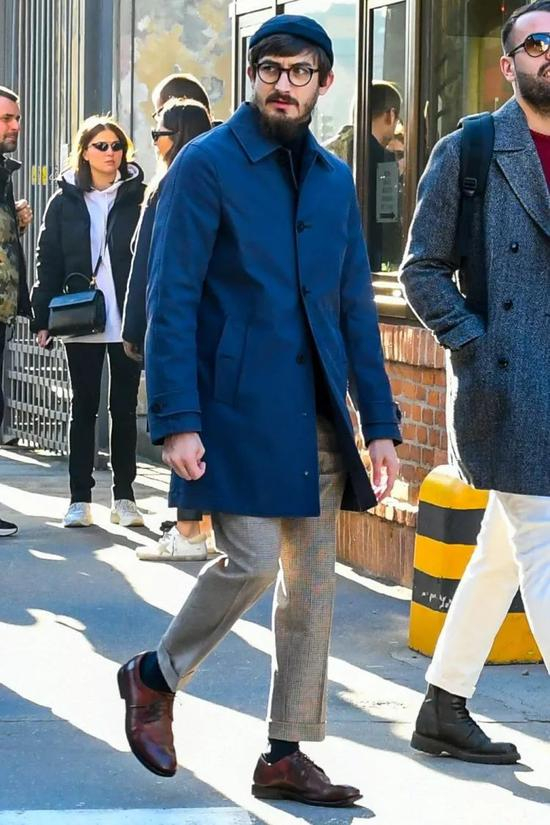 就混搭效果来说,黑色大衣的自由度会更高一点,但要论风格表现,蓝色大衣无疑会更有腔调多许。即便你加入 sneaker 等潮流单品,也难以撼动蓝色大衣那份悠然雅致的风格个性。