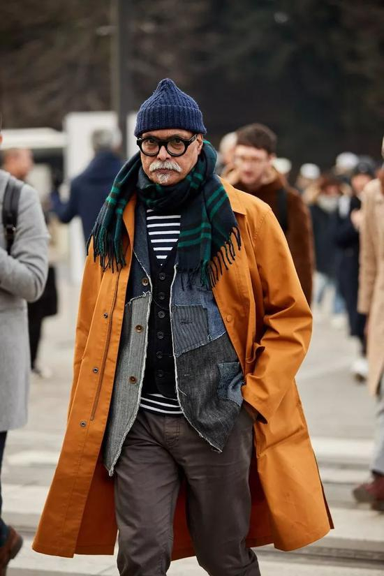 由于脏黄色的明亮程度不会太高,也就大幅度降低了驾驭难度,特别是在呢料大衣身上,风格质感会变得更为沉稳。