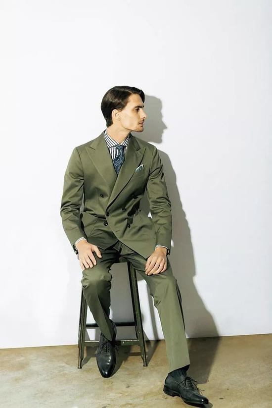 就算是非常醒目的青绿色,只要它的亮度不会太高,每每穿起来也不太容易出错,相反会有普通西装没有的年轻味道。