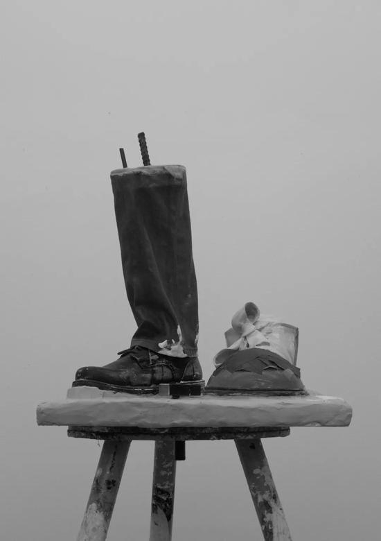 鄢醒,《危险的下午》,2017,雕塑、摄影、装置、布面油画、