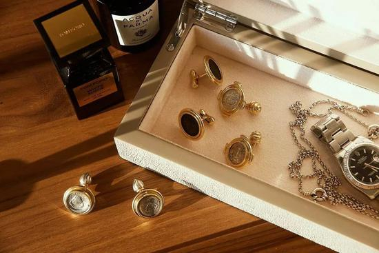 袖扣:普遍礼服的内搭都是白衬衫,这时想让乏味的白衬衫出彩的话,袖扣绝对是最佳选择,可以彰显你独到的个人品味。