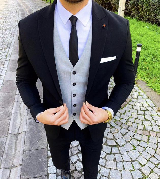 决定完礼服的种类和面料,还有就是礼服的颜色了。如果你不是主持人或部门大佬的话,经典且低调的黑、灰、蓝配色,足以让你看上去十分有型。