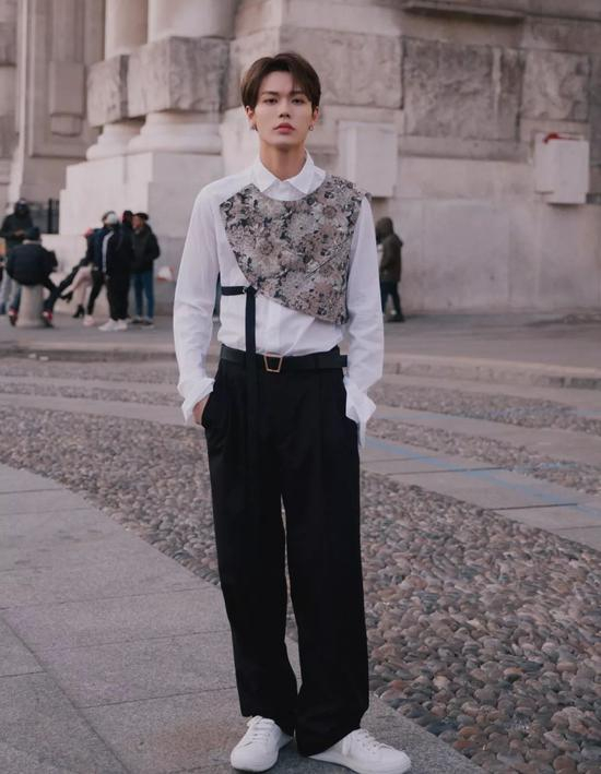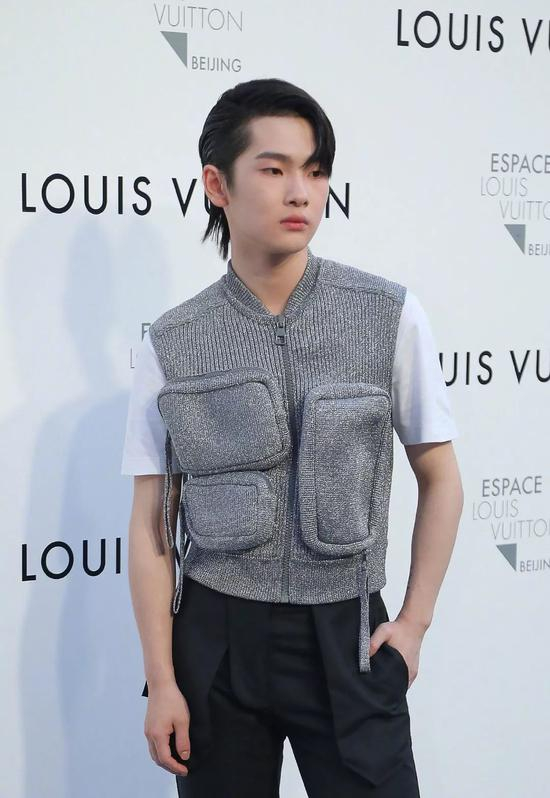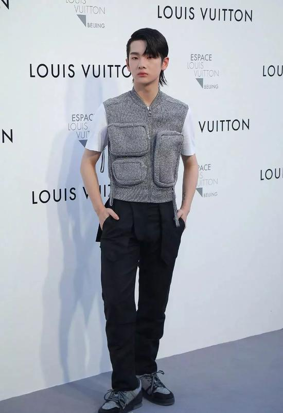 周震南除了唱跳实力,还是一个很新潮的男生。之前出席活动时,他就挑战了侧分油头造型搭配银色口袋针织马甲,潮范MAX!