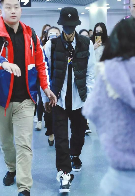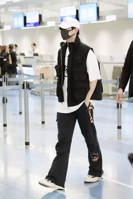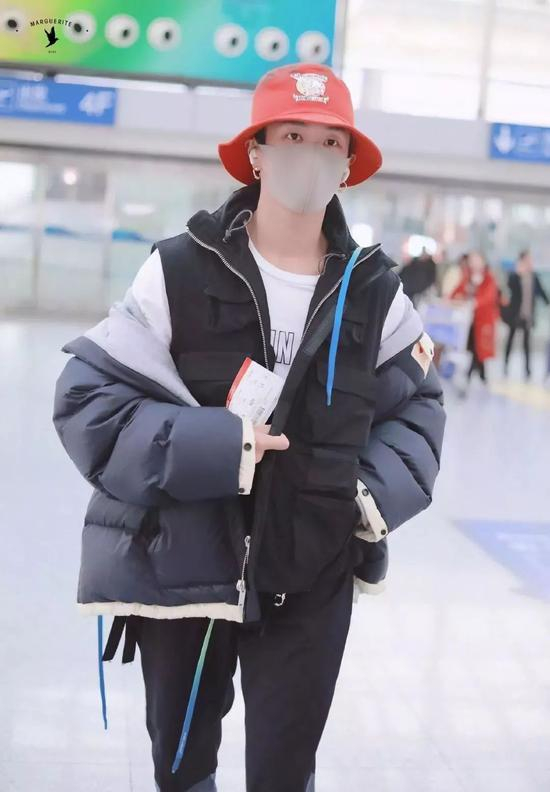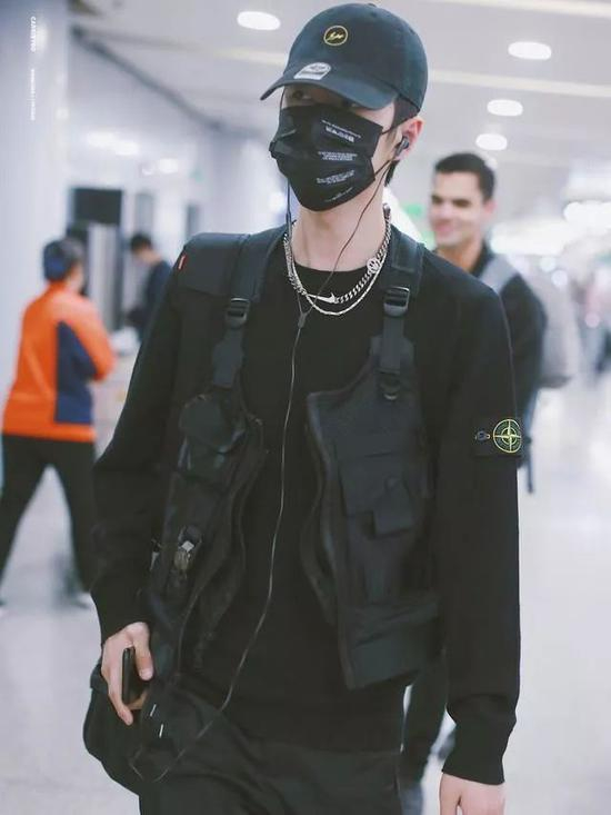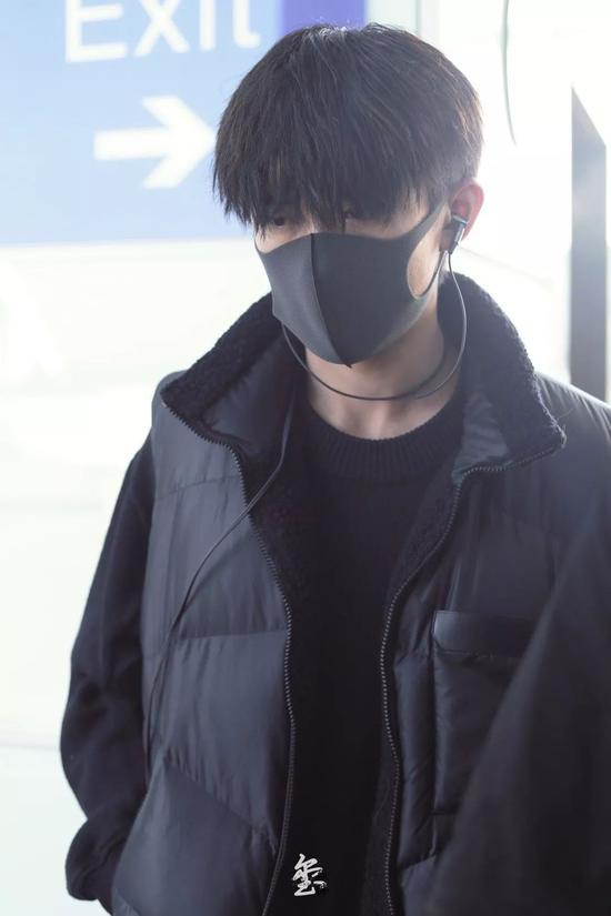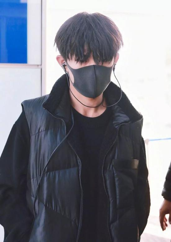 还有前段时间易烊千玺去参加第八届国际戏剧学院奖时,有网友拍到他身穿黑色羽绒马甲搭配黑色毛衣现身机场。