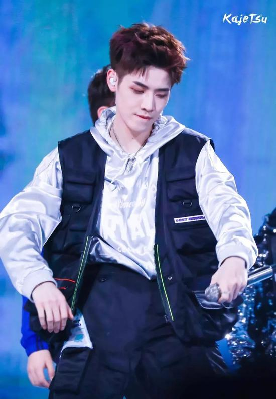 在创造101时身穿的工装马甲,更是异常亮眼。