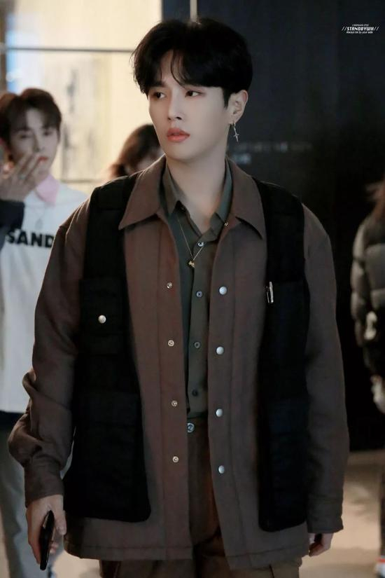 看到旺旺的马甲造型,可以说他真的是很会穿的一位帅哥了。他用衬衫搭配灰棕色的夹克,外面再套件工装马甲,这种层次叠穿符合他一贯的穿搭习惯。