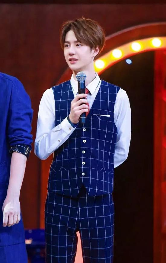 身穿格子西装马甲的王一博,看起来仍是个乖乖的少年。