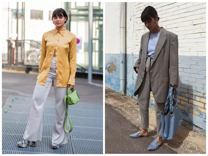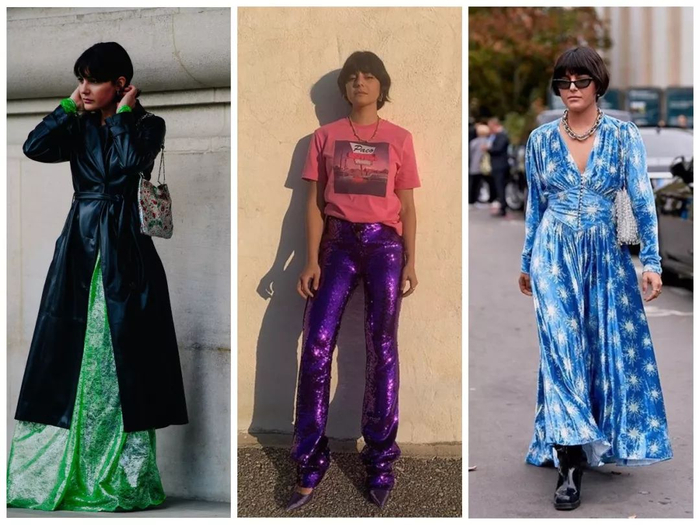 Miss 烧饼更建议,选择棉布、针织、牛仔这些略带粗粝感的材质,去中和缎面的正式。