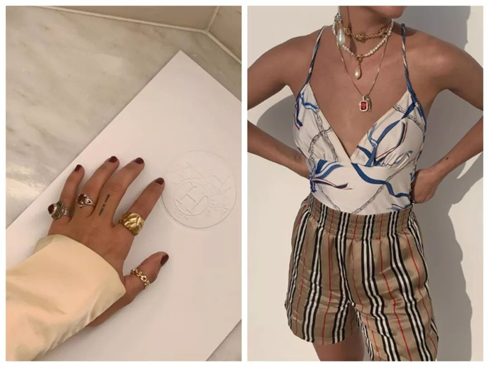 这其实是个不错的思路。尤其像她这样爱玩的人,经典配饰反而能叠搭出趣味感。