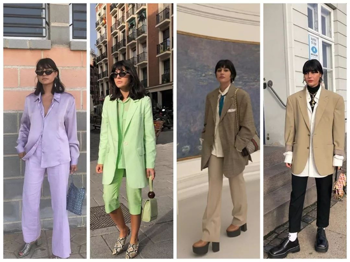 包括西装,也统统是不收腰、大垫肩、过臀线的款式。