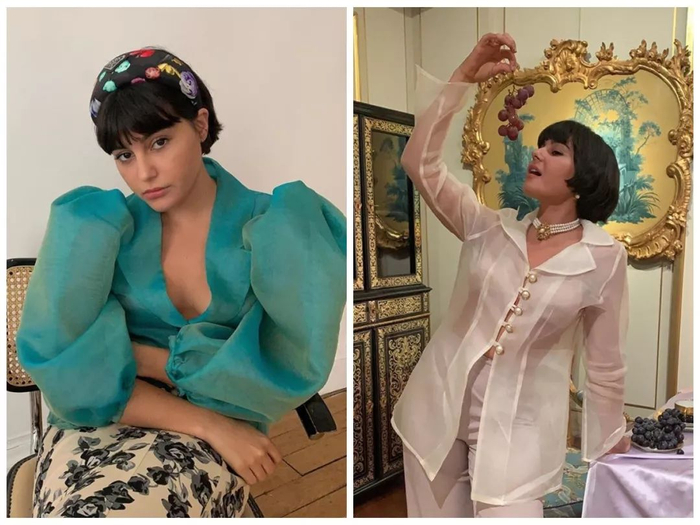 除此之外,她最近还特别爱穿透明纱质单品,也是2020年春夏的流行元素之一。
